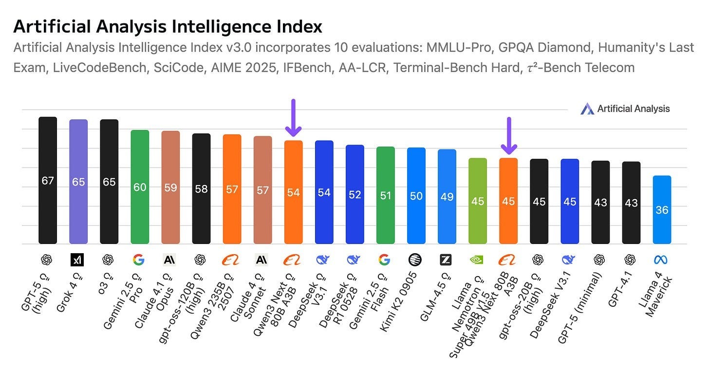 The aggressive rollout isn’t new. In recent weeks alone, Alibaba unveiled Qwen3-Next, which offers comparable performance at a significantly reduced training cost, and an open-sourced agentic model, Tongyi DeepResearch, for deep information seeking. On the Artificial Analysis Intelligence Index, a well-respected benchmark for language model evaluation, two Alibaba models ranked among the top 10 contenders.