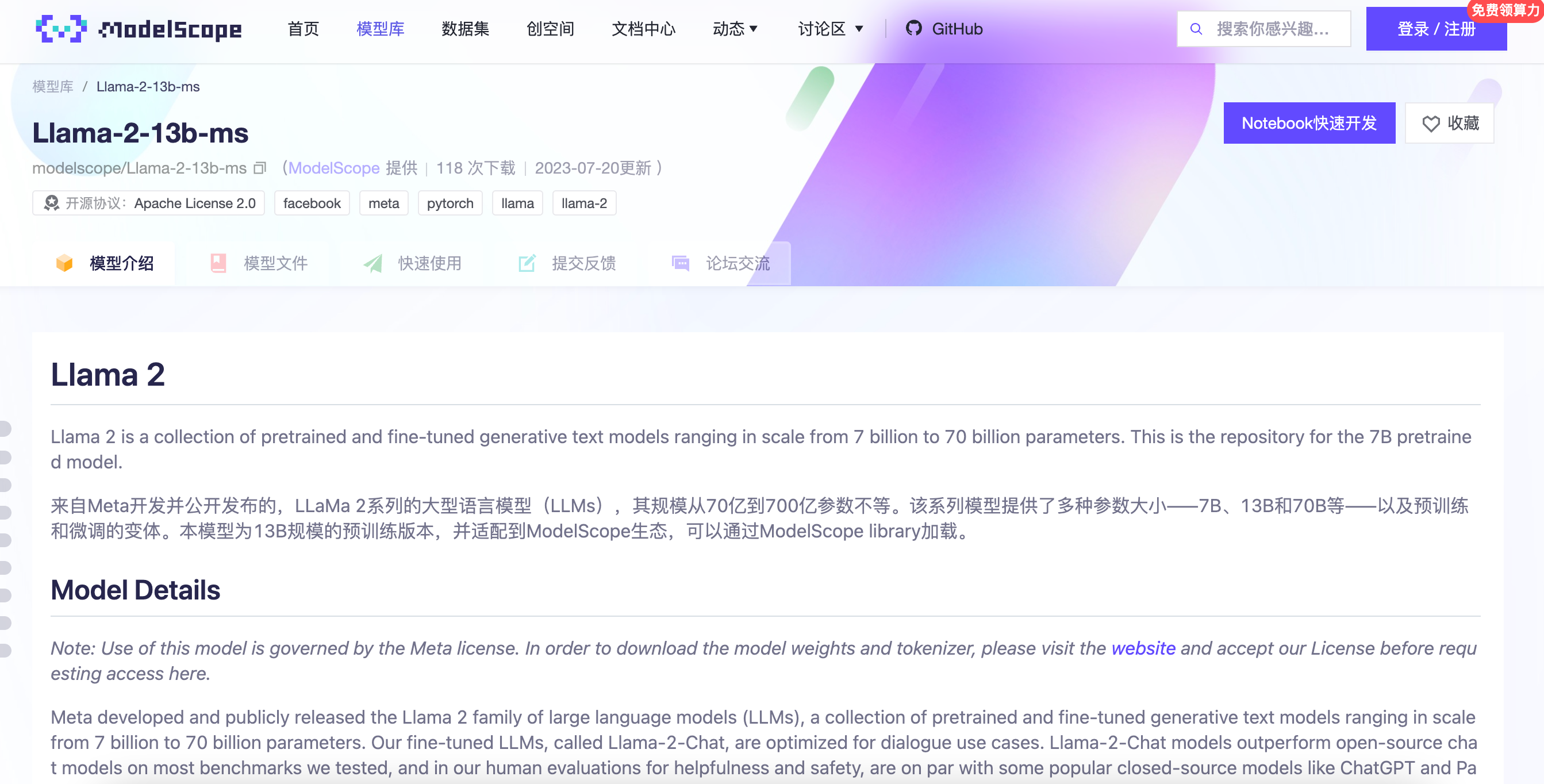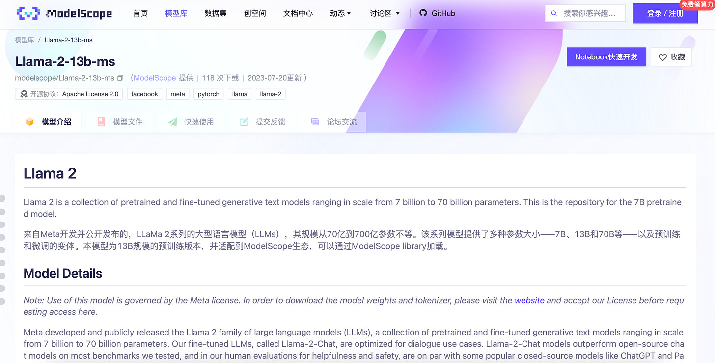 How it works: Alibaba Cloud, via its AI model platform ModelScope, has added the Llama2 series model for developers to access. Developers can click on “Notebook Rapid Development” on the ModelScope’s Llama 2 model page to use Alibaba’s Machine Learning Platform, PAI, for cloud-based development and deployment of the model.