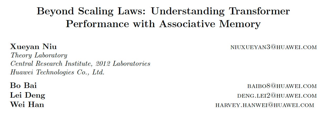Beyond Scaling Laws: Understanding Transformer Performance with Associative Memory