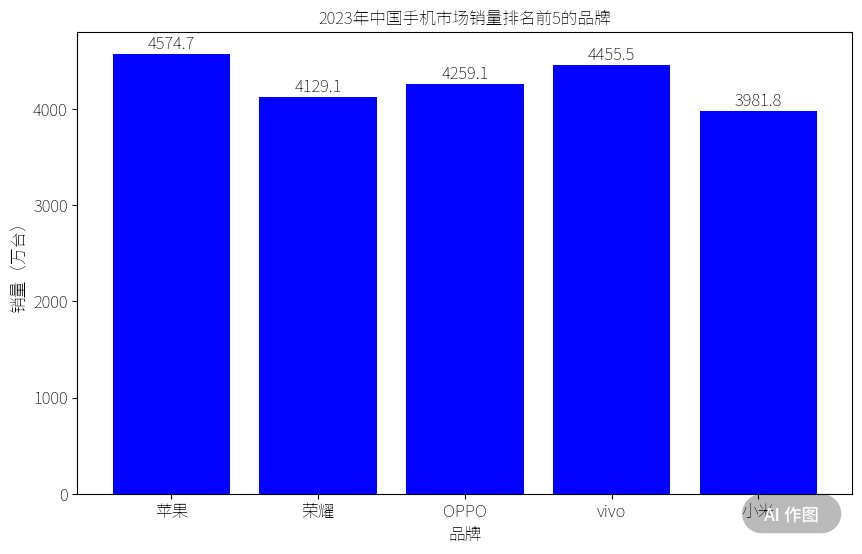 For instance, I tasked the ERNIE 4.0 Tool with searching for the top five mobile phone sales brands in the Chinese market in 2023 and then creating a histogram based on brand and sales volume. Below is the generated output, although it took nearly a minute for ERNIE Bot to complete the task.